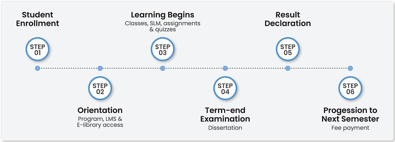 A student doing a program through online education has to register himself/herself for each semester to become eligible to appear for the university examinations. Though the students have the flexibility to choose their pace of Learning and Academic Progression, it is recommended that the students to get re-registered to the subsequent higher semester/module by paying the re-registration fee as per their fee payment plan at the beginning of a session within the prescribed deadlines. Re-registration to the higher semester is mandatory to become eligible to appear for the university examination for existing students.